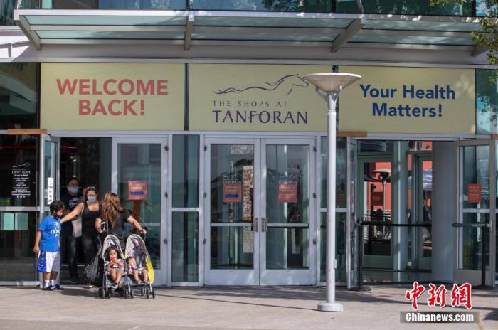 当地时间6月19日,美国加利福尼亚州圣马特奥县一处大型购物中心开门营业。目前,加州重启经济进入第三阶段,只要所在县允许,电影院、餐厅以及大型购物中心等高风险设施可以重新营业。 中新社记者 刘关关 摄