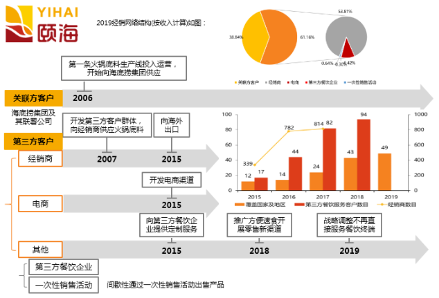 第二个成功因素要数颐海国际建立了多元化的经销渠道。颐海国际的经销网络可以分为两类:关联方客户和第三方客户。