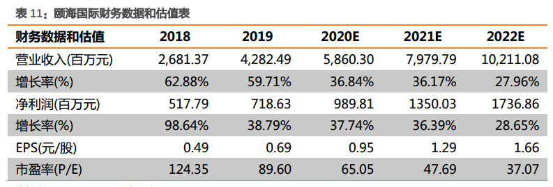 天风证券认为颐海国际在2020年至2022年净利润分别将达到9.9亿、13.5亿、17.37亿元,对应市盈率将为65X/48X/37X,对应公司市值在694至868亿元,折合目标股价区间为72.71-90.89港元。