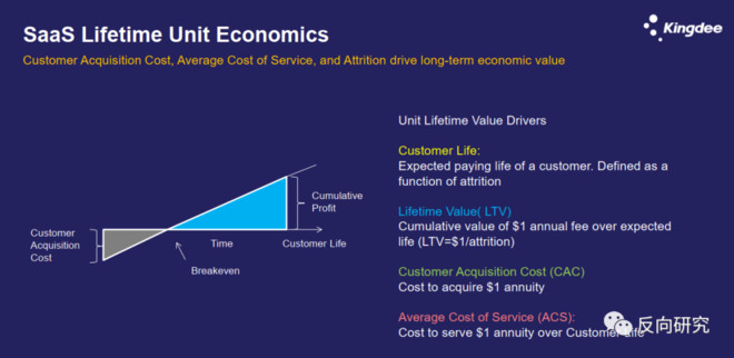 再从SaaS的商业模式看,根据金蝶的路演资料,这种看似夸张的前期用户获取费用基本是标配。因为只有如此,才能够获取到未来较大的用户价值。