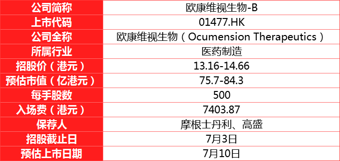 欧康维视生物-B在港交所发布公告,将于2020年6月29日至7月3日招股,拟发行约1.059亿股股份,香港发售占10%,国际发售90%,另有15%超额配股权,发售价将不超过每股发售股份14.66港元,且除非另行公布,目前预期不会低于每股发售股份13.16港元,每手500股股份,入场费7403.87港元,预期2020年7月10日上市交易。