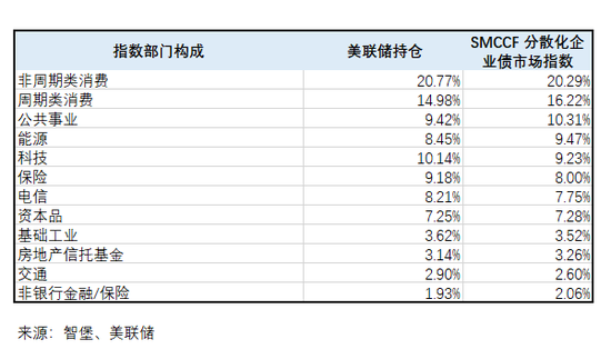 美联储6月16日宣布,SMCCF将创设一个分散化企业债市场指数,并基于该指数购入单个债券形成组合。美联储主席鲍威尔表示,将从先前的ETF购买转向其他指数形式,并且将逐步减少ETF的购买量,增加对企业债的直接支持。目前,美联储所谓的“分散化企业债市场指数”中,共录入794家企业,其中非周期性消费部门与周期性消费部门占权重最高,分别为20.29%和16.22%。(指数具体构成点这里,部门权重见图2)