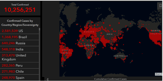 根据最新数据,全球新冠肺炎累计确诊已达1025.6万例!此前周日,全球才刚刚突破1000万例,也就是说两天增加了近25万例!中国疾控中心流行病学首席专家吴尊友表示,全球疫情第一波根本还没过。