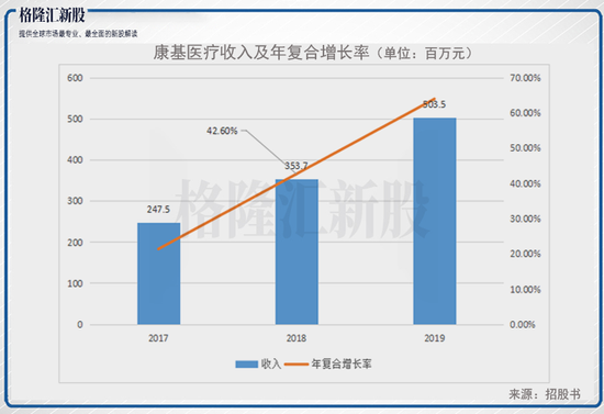 从营业收入上来看,康基医疗的收入由2017年的人民币2.48亿元增至2018年的人民币3.54亿元,并进一步增至2019年的人民币5.04亿元,年复合增长率为42.6%。