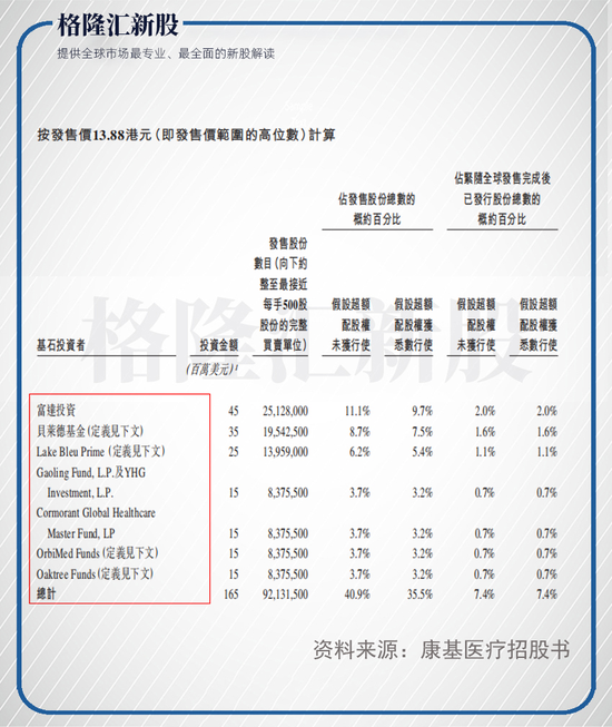 值得注意的是,康基医疗和海吉亚的背后都隐现着高瓴资本的身影。此前海吉亚曾经历4轮融资。据其招股书,此次公开募集19.858亿港元,基石投资者由高瓴领衔,其余还包含奥博资本、南方基金、清池资本、锐智资本、老虎基金、正心谷创新资本、东方资产等。而康基医疗曾在2017年和2019年两次试图冲击A股市场未果,此次转而赴港上市,并引入高瓴资本、贝莱德、橡树资本、OrbiMed等7家基石投资者。