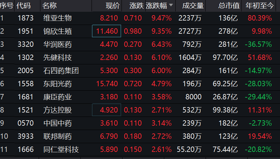 新浪港股讯 6月30日消息,医疗保健股继续走高,其中,维亚生物大涨9.5%,锦欣生殖涨9.35%,华润医药、先建科技、石四药集团涨逾6%,东阳光药、康诚药业等大涨。