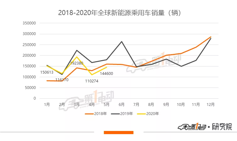 根据EVsales数据,全球新能源乘用车5月销量达14.5万辆,环比上涨31.1%,同比下降19.3%,但下滑幅度有所缩减。