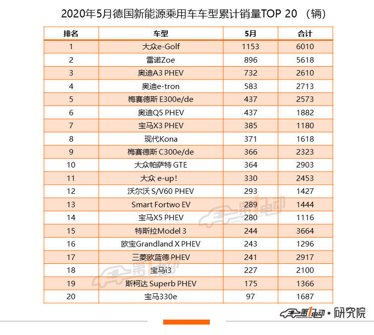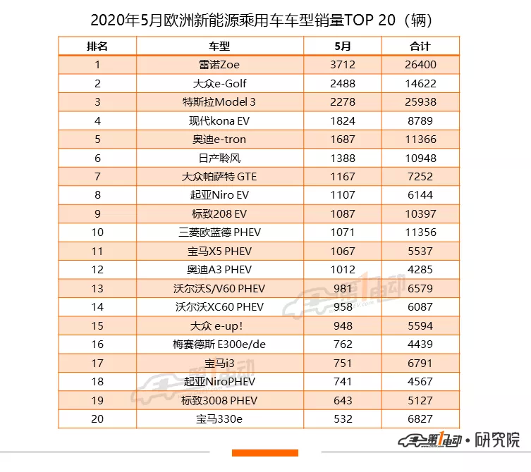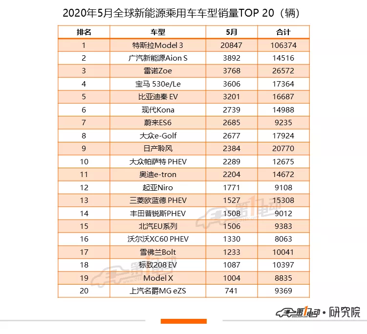 5月得益于中国市场的发力,特斯拉(TSLA.US)Model 3的全球销量达2万辆,其中中国市场贡献了53.2%的份额。目前特斯拉Model 3全球累计销量已突破10万辆,是今年目前为止唯一一款销量破10万辆的车型,同时,领先第二位雷诺Zoe约4倍,优势十分明显。单月排名第二和第三的车型分别来自广汽新能源Aion S和雷诺Zoe,销量环比分别增长8.5%和77.9%。