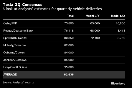 据彭博汇编的分析师预期,特斯拉上个季度可能交付了超过82,000辆汽车。一些分析师甚至估计交付量可能超过今年第一季度时的88,000多辆。