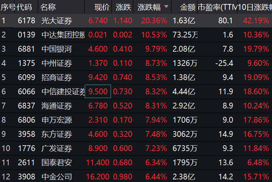 新浪港股讯 7月2日消息,沪港深三地市场火热,券商股集体爆发,其中,光大证券飙升至20%,中国银河涨10%,中州证券涨8.7%,招商证券涨8.5%,中信建投证券涨8.3%,海通证券涨8.3%,申万宏源涨8%,东方证券涨7.5%,中金公司涨6.4%,中信证券涨8%。