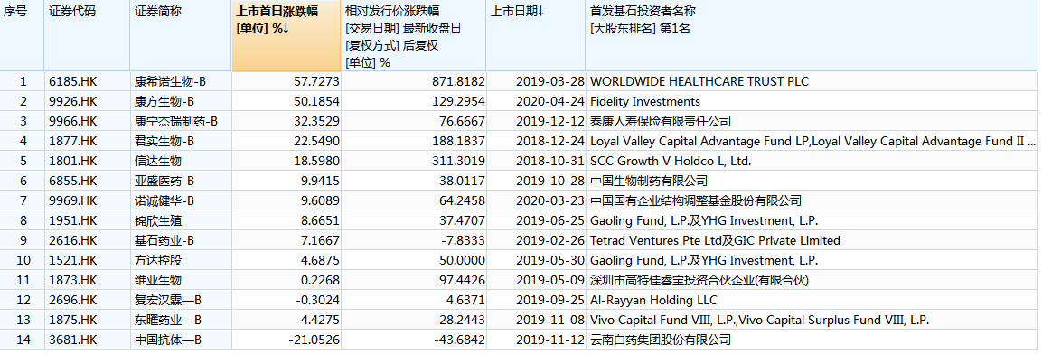 首先需要关注的要数2019年以来最热门的医药板块了。根据统计2019年在港股上市的12只医药公司中上市首日上涨的有9只,上涨率达75%。