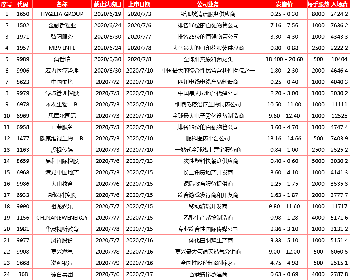 七月一开端港股打新市场就热闹非凡,究竟这二十几家将挂牌上市的公司中谁能夺得收益桂冠,我们拭目以待。