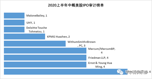 2020年上半年也出现了一些新的趋势。因纳斯达克上市门槛的收紧,小型承销商都转向了包销方式(firm commitment)进行IPO;有更多的小型承销商加入IPO项目;IPO审计事务所集中在四大,Marcum,Friedman,MaloneBailey和UHY等有限的几个审计所。全球疫情和政治,经济及监管对中概股上市的影响,或将滞后到下半年才能显现出来。