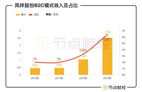 2016年,凤祥股份通过B2C模式录得的收入不过0.47亿元,占比仅2%。截至2019年末,这一模式下的收入已增长至2.53亿元,占比提升至6.4%。