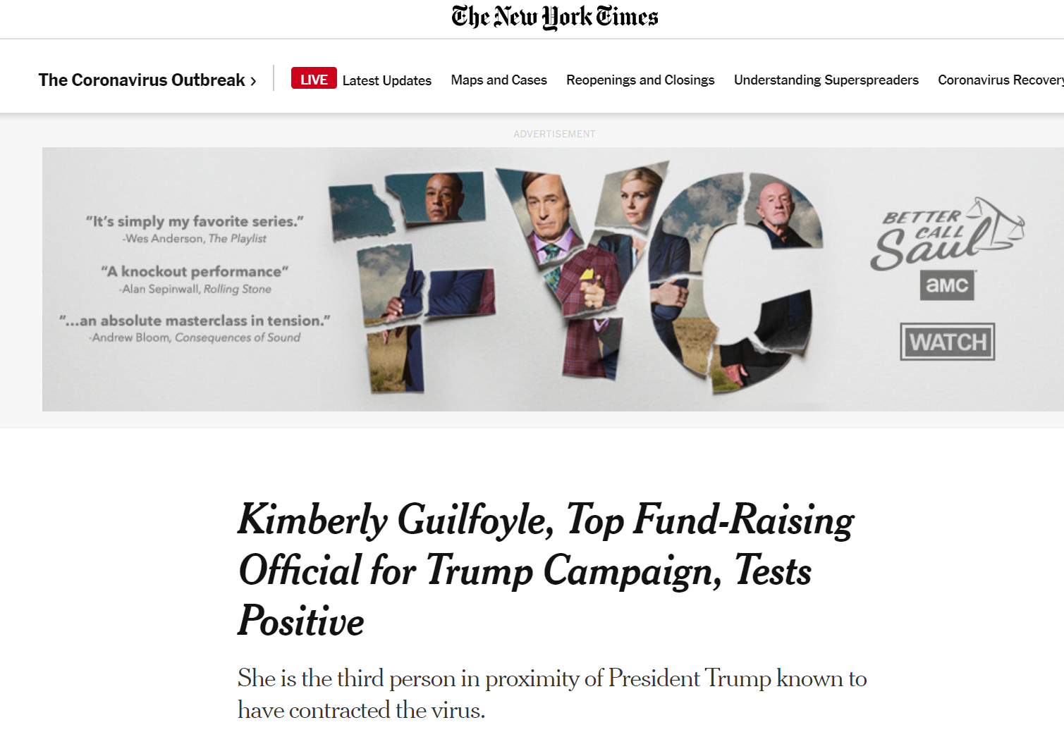 报道称,吉尔福伊尔是特朗普大儿子的女朋友,是特朗普身边已知的第三个感染新冠病毒的人。