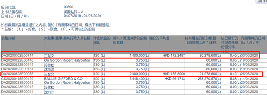 新浪港股讯 7月4日消息,美团点评高级副总裁王慧文在6月份曾两度减持美团,分别在6月25日、6月30日减持200万股和100万股,分别套现2.74亿港元、1.72亿港元,两次套现4.46亿港元。