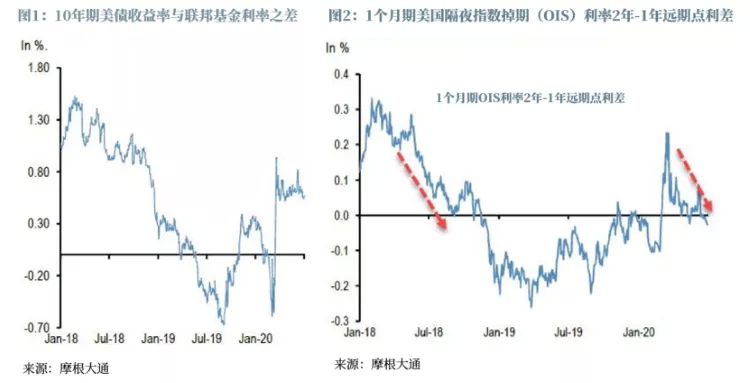 “尽管在今年3月底美联储对卫生事件做出强有力的政策反应之后,OIS曲线的1-2年远期利差已经迅速上升,并转为正值,但在过去几个月里它又在逐渐下降,并在上周转为负值——在6月29日跌至-3个基点。”