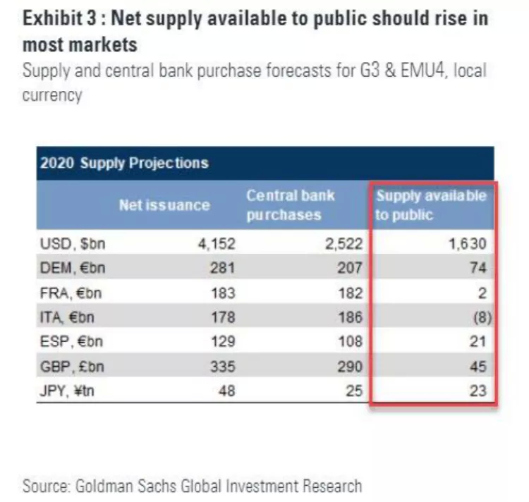 换句话说,美联储在过去三个月里注入了超过3万亿美元的流动性,但摩根大通认为这远远不够。巧合的是,摩根大通不是唯一这样想的投行。早在5月中旬,高盛就发表了相同的看法。它认为美联储需要将更多的债务货币化(比当前预想中多大约1.6万亿美元),从而避免美债收益率的无序上升。这对美联储来说是个严峻的问题。
