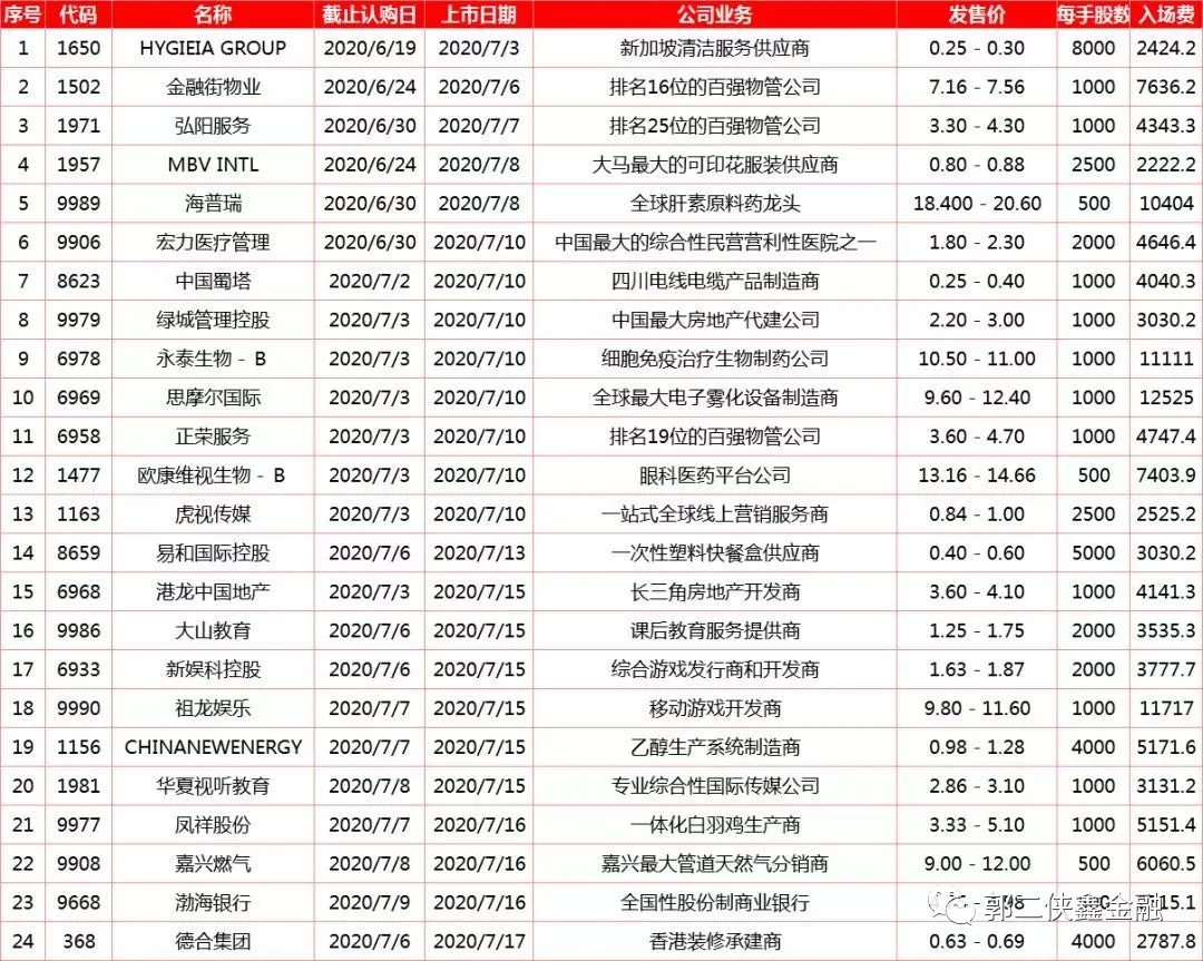 来源:“郭二侠鑫金融” 原标题《港股IPO半年报及6月份打新总结》。文中观点不代表智通财经观点。