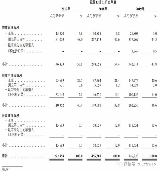 其中,正荣服务2019年来自物业管理服务的收入为3.42亿元,占比为47.8%;来自非业主增值服务收入为2.62亿元,占比为36.6%;来自社区增值服务营收为1.11亿元,占比为15.6%。