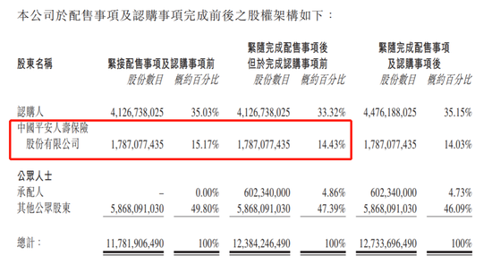 紧随完成配售事项后,平安人寿持股将从15.17%减少为14.43%。