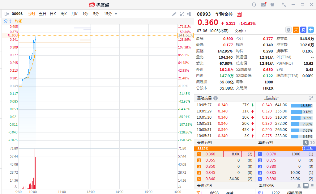 新浪港股讯 7月6日消息,华融金控涨幅扩大至141%,拟溢价逾36%将华融投资私有化。华融投资涨27%。