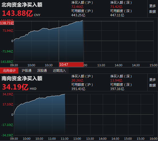 北向资金净流入143.88亿元 沪股通净流入72.46亿元