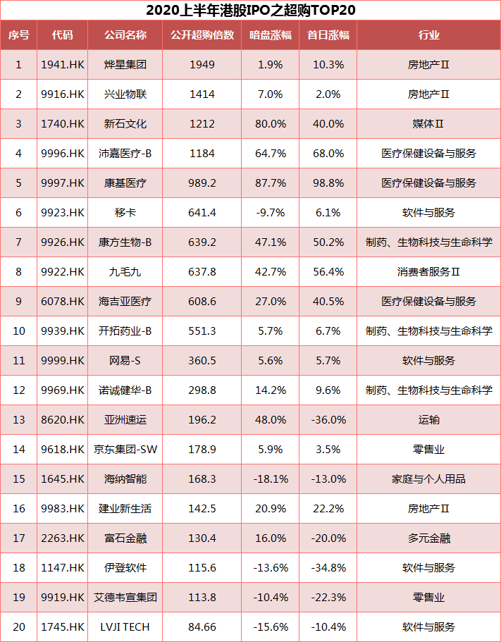 随着我国新冠疫情得到很好的控制,港交所的新股发行在下半年伊始掀起一波高潮。