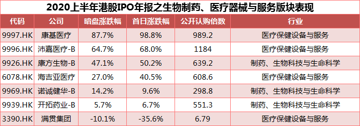 康基医疗、沛嘉医疗、康方生物、海吉亚医疗这四家公司在暗盘和上市首日涨幅都有超过27%和40%以上的表现。所以下半年投资者还是应该对这个版块重点关注。