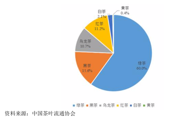 从市场份额来看,绿茶占了过半壁江山。根据中茶股份预披露文件引述的数据,2019年各茶类国内市场销售量中,绿茶销售量为121.42万吨,占比60%。其次,是黑茶(31.86万吨,占比15.6%)和红茶(22.6万吨,占比11.2%)。