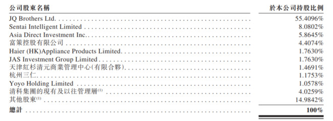 创始人倪正东通过JQ Brothers Ltd持有清科55.4%股份,为最大股东;苏江涛通过Sentai Intelligen Ltd持有公司8.08%股份;王东通过Asia Dire Inv Inc.持有公司5.86%股份;此外,海尔电器、红杉资本、启明创投合伙人邝子平也持有公司部分股权。