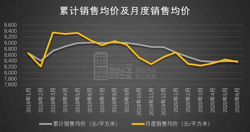 根据累计销售面积及销售金额计算,2020年1~6月碧桂园累计销售均价为8381.48元/平方米,环比下降0.07%,同比下降7.01%。