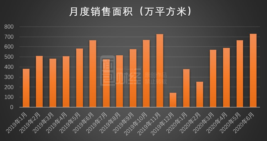 2020年1~6月,碧桂园累计实现销售面积为3185.00万平方米,同比增加1.82%。