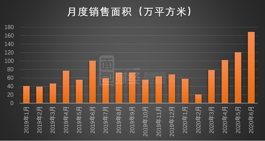 6月销售面积:同比增加67.64%