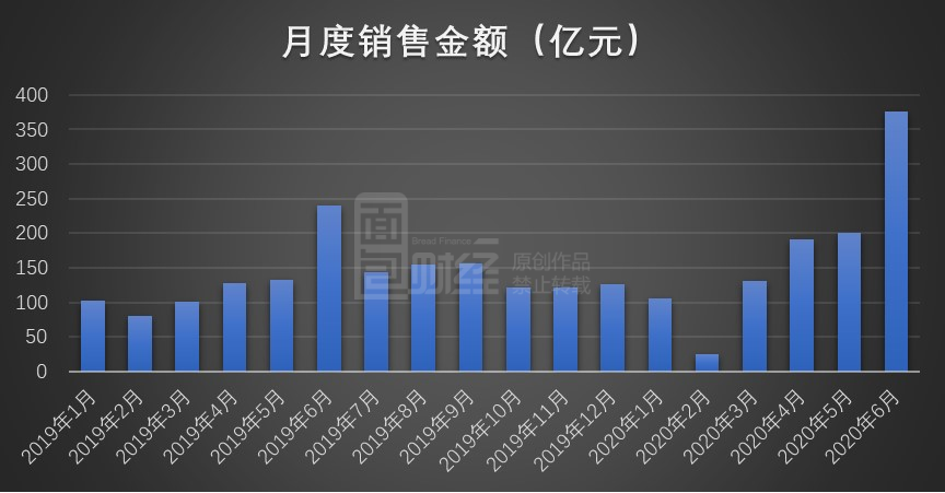 6月销售额:同比增加56.83%