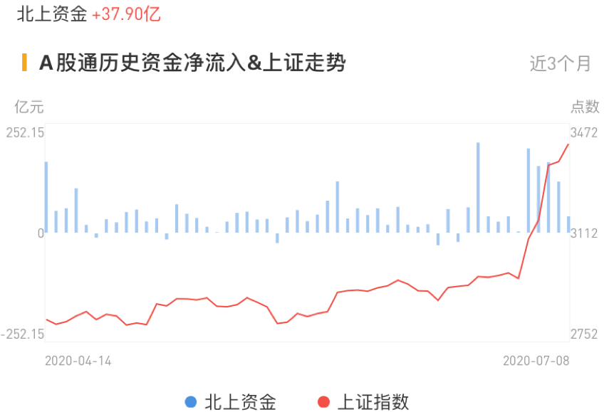 今日,南下资金净流入港股103.25亿港元,较昨日显著增长;北上资金今日净流入A股37.9亿元,流入金额较前日下降幅度较大,并且呈现逐日递减的态势。