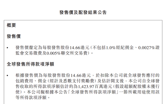 由于香港公开发售的超额认购多于100倍,故已采取招股章程重新分配程序。香港公开发售项下的发售股份最终数目为5296.5万股发售股份,占超额配股权获行使前根据全球发售初步可供认购的发售股份总数的50%。