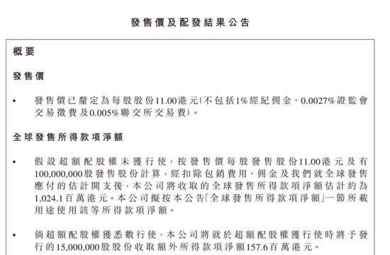 国际发售项下初步提呈的发售股份已获超额认购约七倍。,国际发售项下发售股份的最终数目为5000万股股份,相当于全球发售项下发售股份总数约50%。