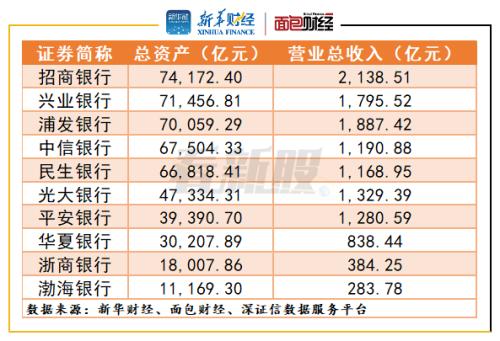 深证信数据服务平台的数据显示,截至2019年底,渤海银行的总资产及营收规模明显小于其他已经上市股份制商业银行,居于行业末位。