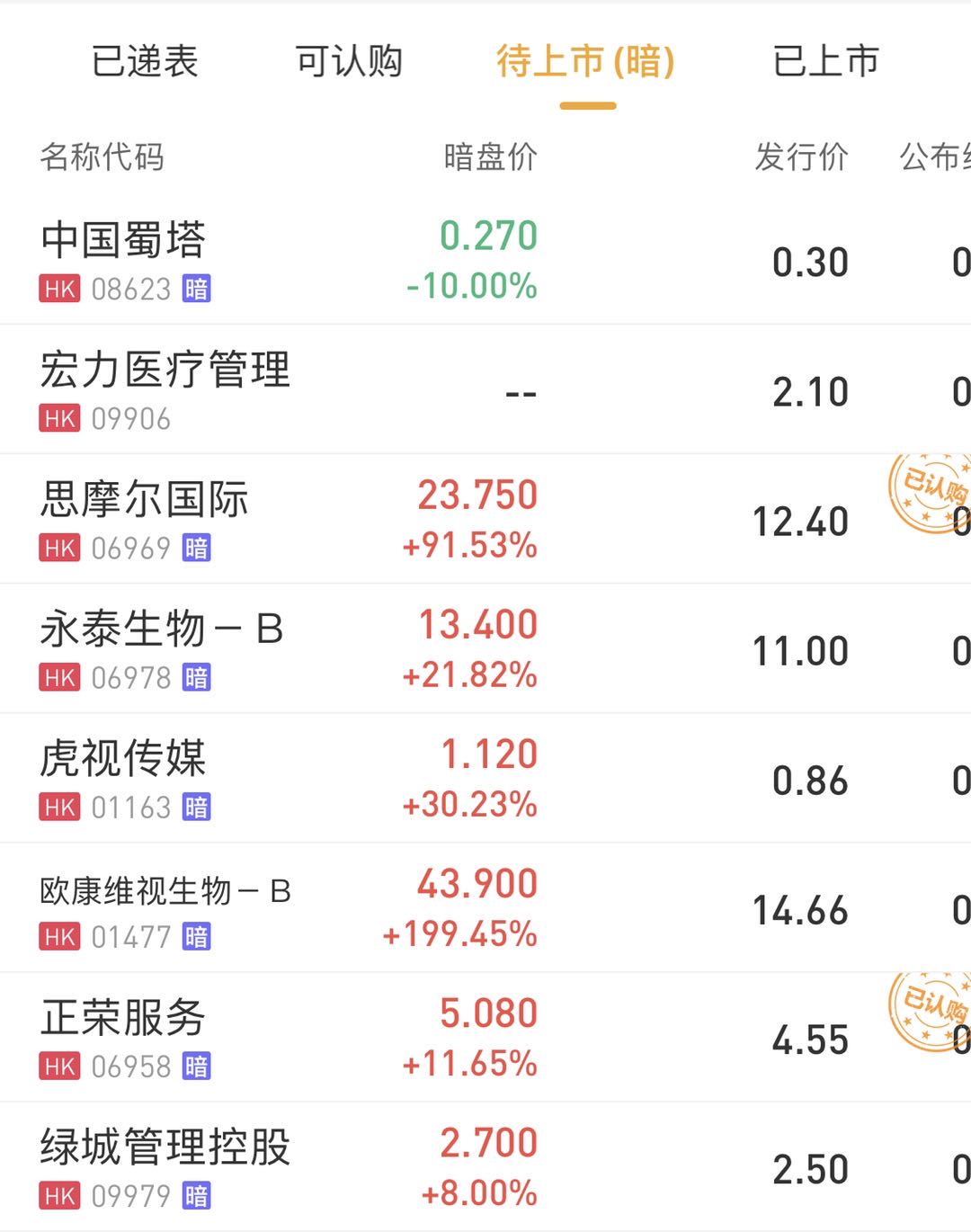 截至收盘,欧康维视生物-B收涨近200%,一手大赚14620港元;思摩尔国际大涨91.53%,一手赚11350港元。
