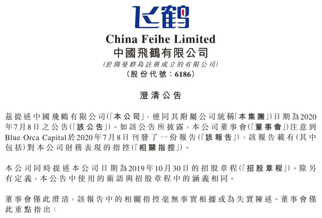 这次,中国飞鹤在“杀人鲸”报告发布后当日迅速发布公告,称“董事会强烈否认该 报告中的有关指控,并认为有关指控并不准确及具误导性。”