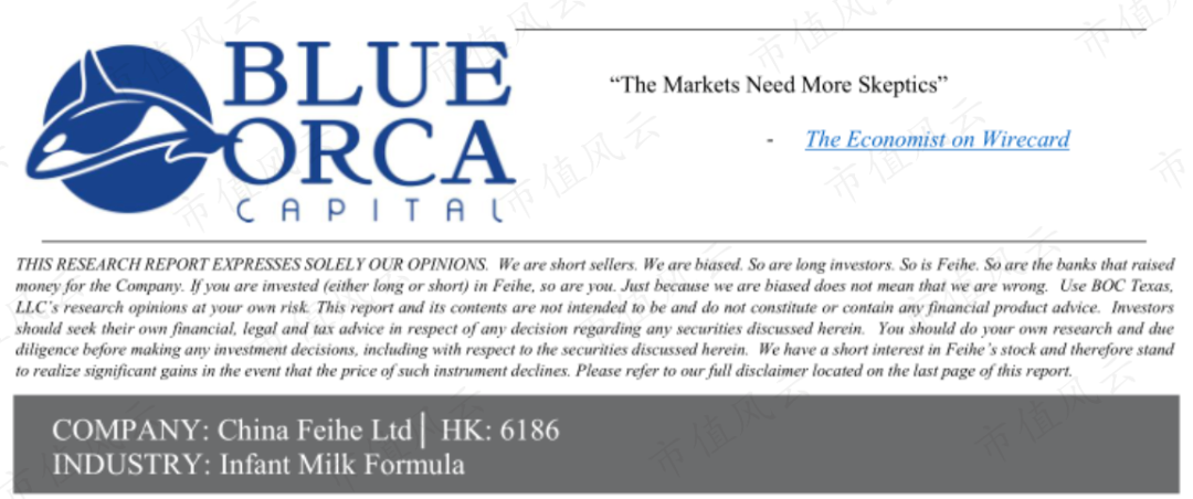 今年,“杀人鲸”的目标再次瞄准了在港上市的内地乳企,这一次为中国飞鹤。