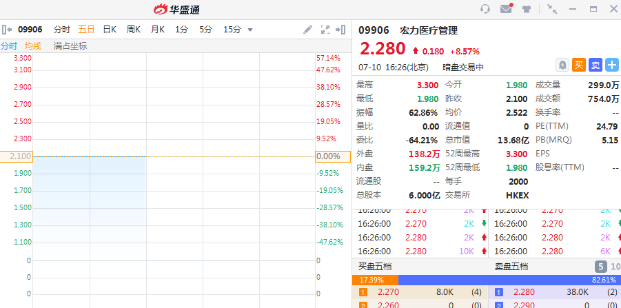 华盛资讯7月10日讯,2只新股今日挂牌集体高开,宏力医疗管理低开后翻红,现涨8.75%,报2028港元,最新市值13.68亿港元。易和国际控股高开3.7%,现涨27.5%,报0.51港元,最新市值3.06亿港元。