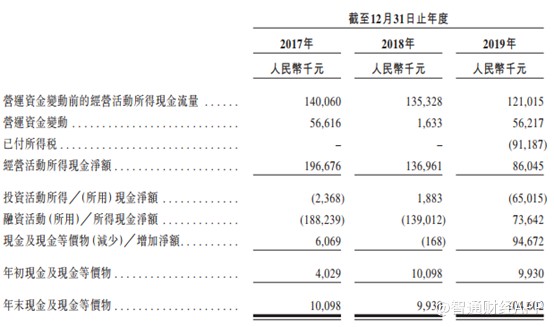 上市支出加上业务扩张在即,使得公司的财报并不是十分好看,智通财经观测到,2017-2019年,公司的经营活动所得现金净额连续三年呈现下滑趋势,截至2019年末,公司经营所得现金净额为8604.5万元,较上年同期的约1.37亿元出现了大幅度下滑。