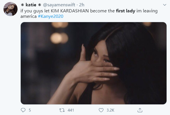 还有网友提名更适合当总统的人选,认为歌手泰勒·斯威夫特的粉丝是“侃爷”的3倍,还比“侃爷”理智多了,不如选她算了。