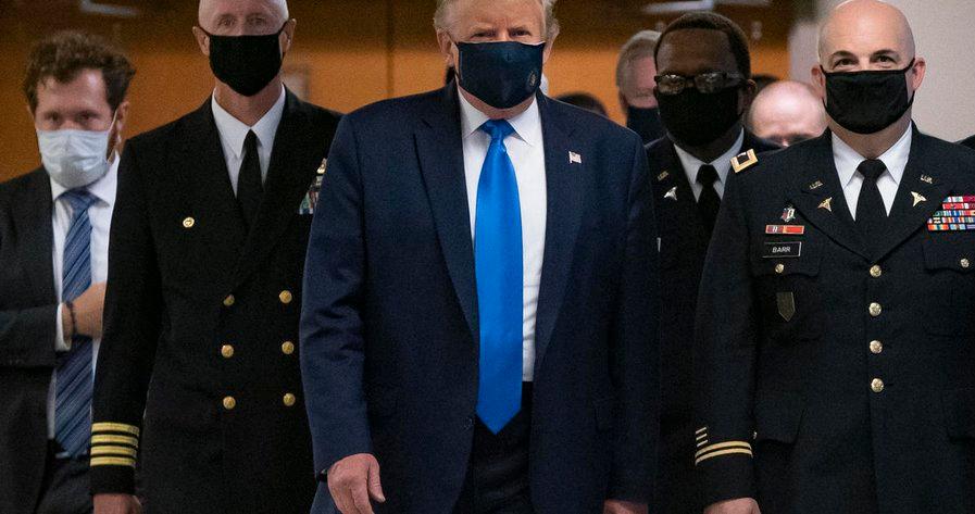 当地时间11日下午,北京时间今天清晨,美国总统特朗普在马里兰州一家军方医疗机构看望伤兵和一线医护人员时,戴上了口罩。美国媒体报道称,这是自打新冠肺炎疫情在美国暴发以来,特朗普首次公开佩戴口罩。