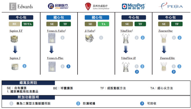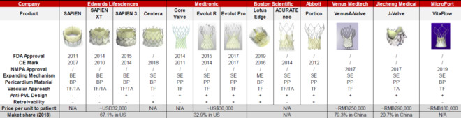 目前三家公司获批: 启明医疗 VenusA, 杰成医疗 J-valve, 微创医疗 VitaFlow