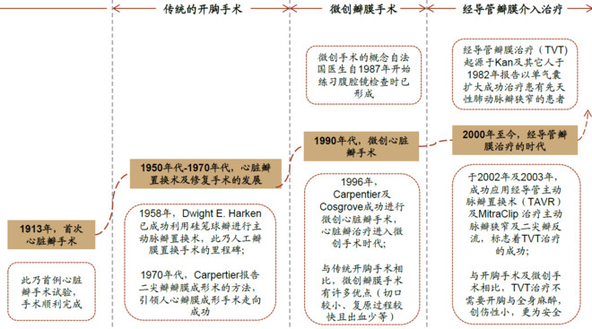 心脏瓣膜手术分为:开胸手术 (SAVR)、微创瓣膜手术 (MIVS)、经导管瓣膜介入治疗 (TVT)
