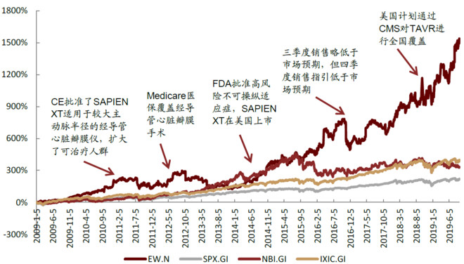 美股十倍股 (tenbagger) 爱德华 EW: 股价从2009年至今涨幅超过11倍 (市值38亿美元→430亿美元)