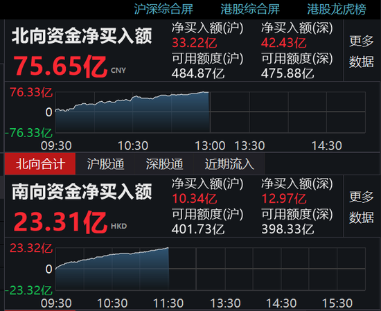 新浪港股讯 7月13日消息,北向资金今日再度大幅流入76亿,沪股通净流入33亿,深股通净流入42亿元。